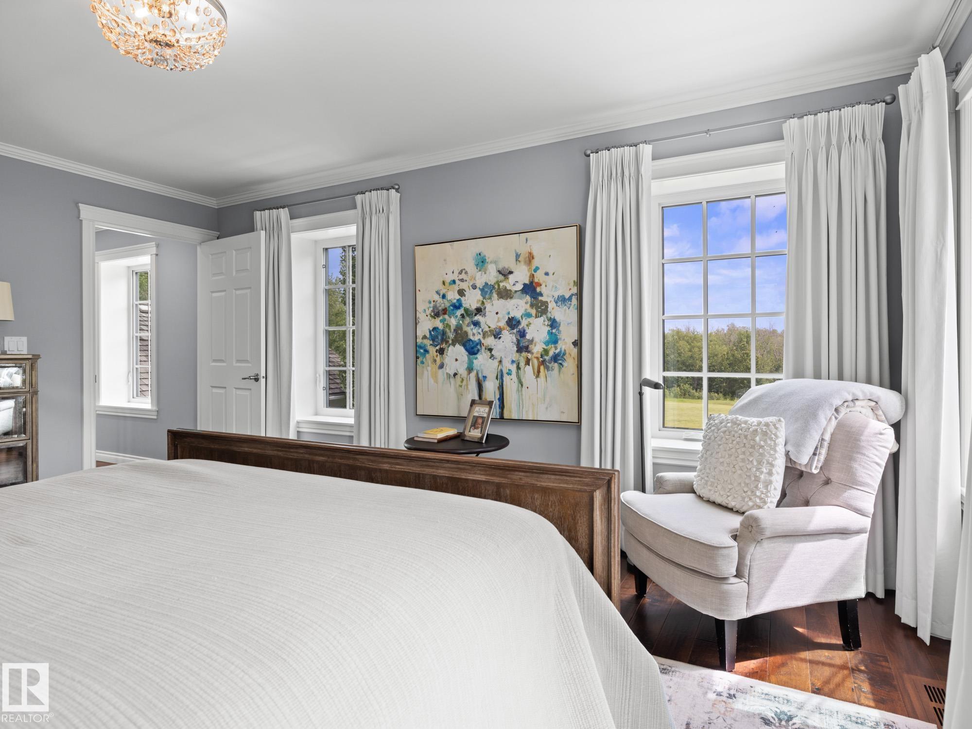 ~ AWARD WINNING NEW ENGLAND FAIRFIELD FEDERAL STYLE HOME on 3.78 ACRES ~ LOCATED in the ESTATES AT CRIMSON LEAF, JUST MINUTES FROM SHERWOOD PARK ~ TRIPLE ATTACHED GARAGE ~ FULLY FINISHED WALK-OUT BASEMENT ~ This amazing one of a kind property was custom built with tons of amazing features including: Cistern which is fed by a municipal water system ~ GEO THERMAL Heating & Cooling System with 2 forced air units, in-floor heating in basement & garage plus a back up electric hot water tank ~ Double thick walled construction 12" vs 6" ~ TRIPLE PANE WINDOWS ~ POLISHED CONCRETE FLOOR IN BASEMENT ~ Huge Shop Located Under the Triple Attached Garage ~ Barnwood Island Kitchen Countertop ~ ICF FOUNDATION ~ Community Sewer System with Holding Tank ~ TONS OF HARDWOOD FLOORING ~ Custom Landscaping ~ LOCATED ON A QUIET CUL-DE-SAC ~ Marie Antonette Guillotine Fireplace ~ GYM in basement ~ There is also a bright Conservatory in the Basement for those music lovers ~ GORGEOUS OUTDOOR FIREPLACE and much more.